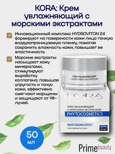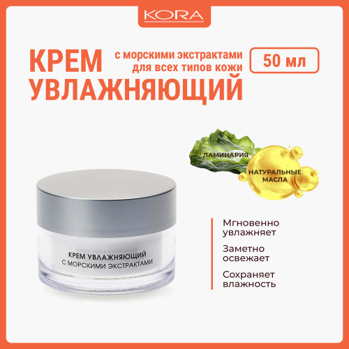 КОРА: Крем увлажняющий с морскими экстрактами, 50 мл.