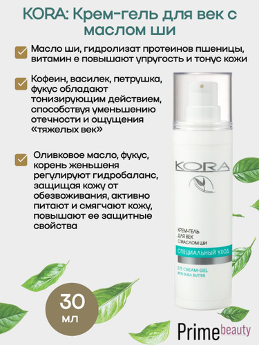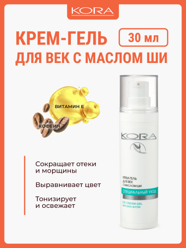 KORA Крем-гель для век, с маслом ши, против отеков и морщин, 30 мл