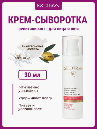 KORA Крем-сыворотка ревитализант 5 факторов молодости кожи, 30 мл