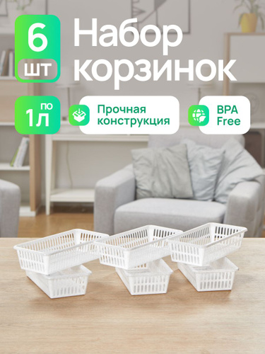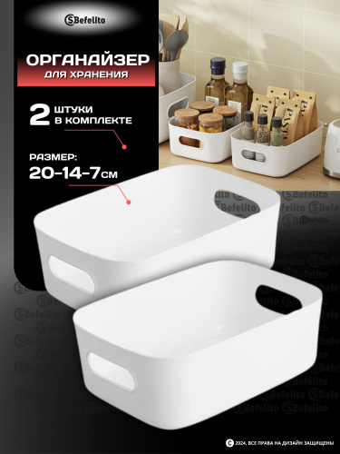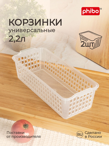 Органайзеры для хранения продуктов, косметики, канцелярии, вещей 2,2 л/ 2 шт набор, корзинки для ванной, кухни, пластиковые без крышки с ручками