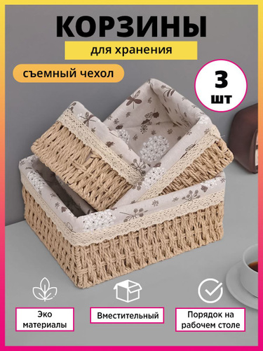 Органайзер для хранения вещей, набор корзин 3 шт.