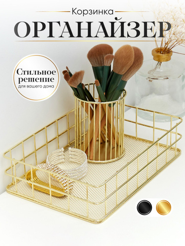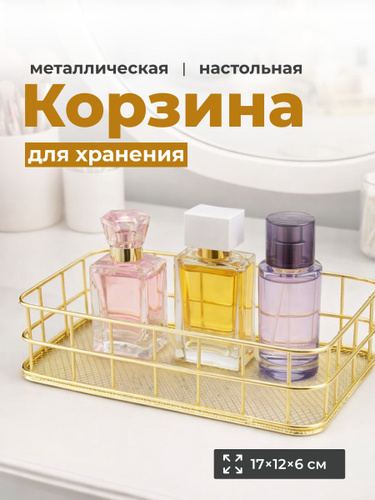 Корзина-органайзер для хранения / Органайзер для косметики / Корзинка металлическая 20х20х8,5 см