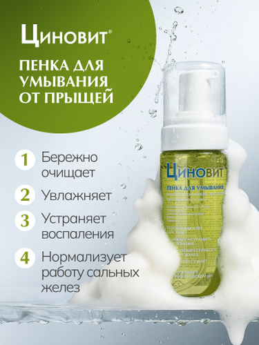ЦИНОВИТ Пенка для умывания лица от прыщей, для проблемной, жирной и комбинированной кожи, 150 мл