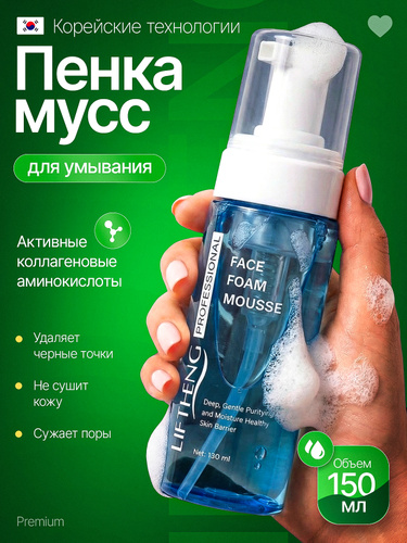 LIFTHENG Пенка для умывания лица, 150 мл / Увлажняющий мусс для жирной и проблемной кожи / Средство от прыщей, акне, черных точек / Для снятия макияжа