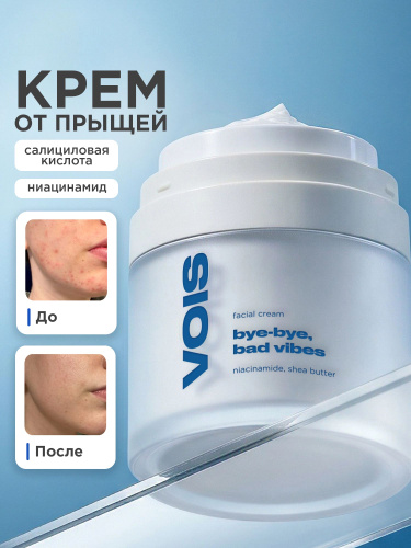 VOIS Крем для лица от воспалений с ниацинамидом, маслом Ши и салициловой кислотой, 50 мл