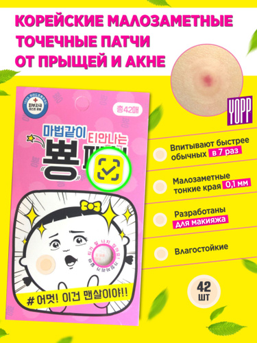 Корейские патчи от прыщей и акне YOPP, 42 шт.