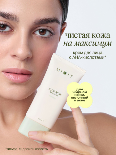 MIXIT Крем для лица от прыщей с кислотами и алоэ вера, увлажняющий, для проблемной кожи, Stop Acne, 50 мл