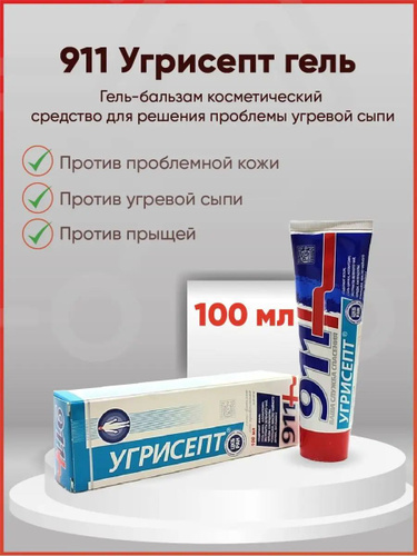 911 Гель для лица Угрисепт, для подростков от угрей, прыщей, акне, 100 мл