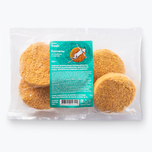 Котлеты из фарша горбуши и минтая в панировке 320 г, Ozon fresh, замороженные