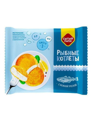 Рыбные котлеты Сытый Папа из тресковых пород в панировке замороженные 300 г