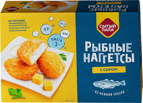 Наггетсы Сытый папа рыб трес с сыром 250г
