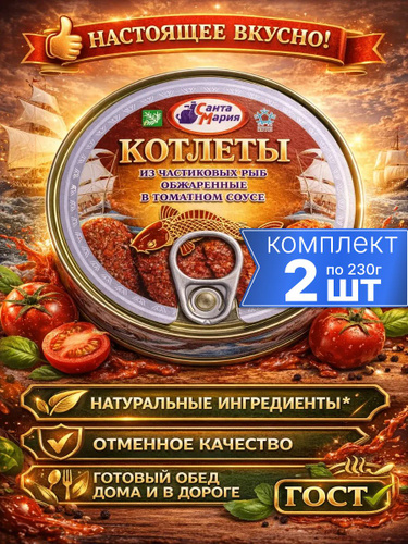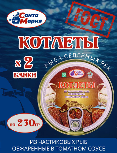 Котлеты из частиковых рыб в томатном соусе 2 банки по 230 гр, Санта Мария