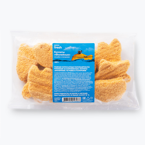 Котлеты из фарша минтая в панировке 320 г, Ozon fresh, замороженные