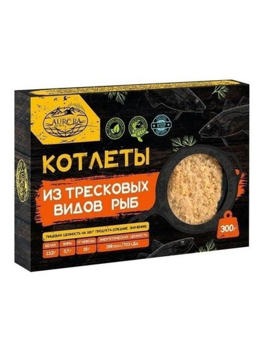 Котлеты Aurora из тресковых пород с кальмаром рубленые замороженные 300 г