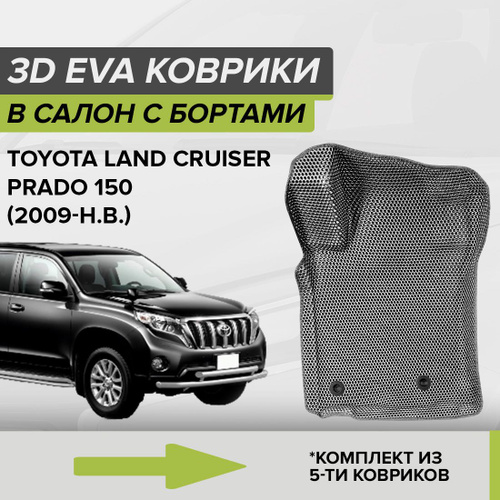 3D ЭВА коврики с бортами Toyota Land Cruiser Prado 150, Тойота Ленд Крузер Прадо 150, 2009-н.в. автомобильные ЕВА EVA комплект в салон на два ряда (5шт.) с ячейками сота липучками СellMat