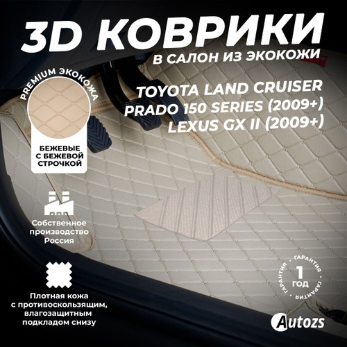 3D кожаные коврики для Toyota LC Prado 150 5 мест(2009-2024)