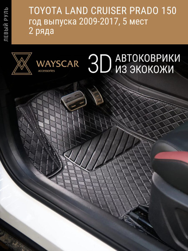 3D автоковрик из экокожи WAYSCAR 3D Toyota;Land Cruiser Prado 150 ; 2009-2017.5 мест; 5 мест, 2 ряда "Лайт" черный в салон авто без защитных накладок