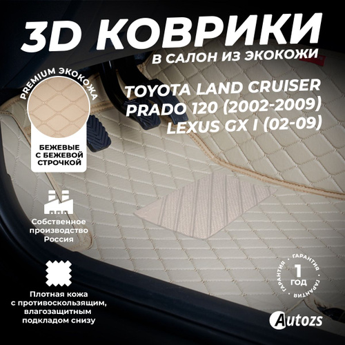Кожаные 3D коврики в салон с бортами для Toyota Land Cruiser Prado 120 Series (2002-2009)/ Lexus GX I (2002-2009) бежевые