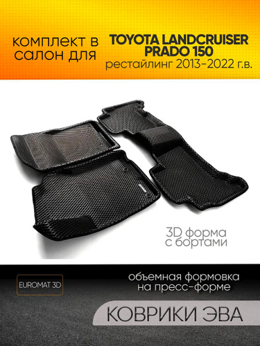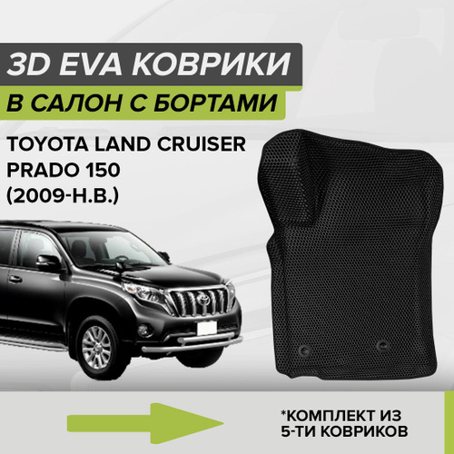 Коврики 3D EVA Euromat для Toyota Landcruiser Prado 150 (2013-2022) (3Д Евромат ЭВА с бортиком Тойота Ленд Крузер Прадо 150), черные