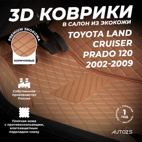Коврики для Тойота Ленд Крузер Прадо 150 (2009-2017). Автоковрики, полики Toyota Land Cruiser Prado 150 (1 поколение), экокожа со съемным текстилем 3D/5D, шоколадный с бежевой строчкой