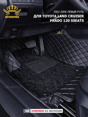 Автомобильные 3D ковры из экокожи со 2 слоем, защитный резиновый слой для Toyota Land Cruiser Prado 120 5мест левый руль 2002-2009
