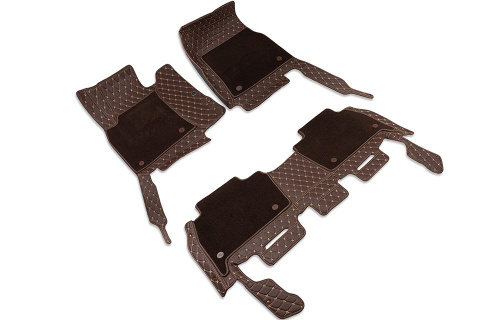 Кожаные 3D коврики в салон с бортами для Toyota Land Cruiser Prado 120 (2002-2009) коричневые
