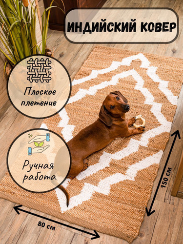 Ковер ручной работы индийский джут, хлопок 80*150 SGE-RH-459