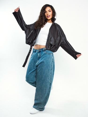 Куртка Yunoza Косуха женская оверсайз, куртка черная с надписями
