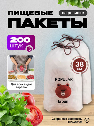 Пакеты крышки на резинке 200шт для хранение продуктов 12-38 см