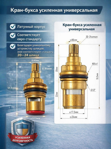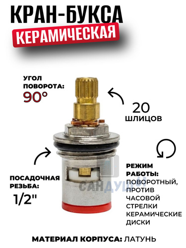 Кран-букса усиленная 1/2, 20 - 24 шлица (универсальная), керамика, 90