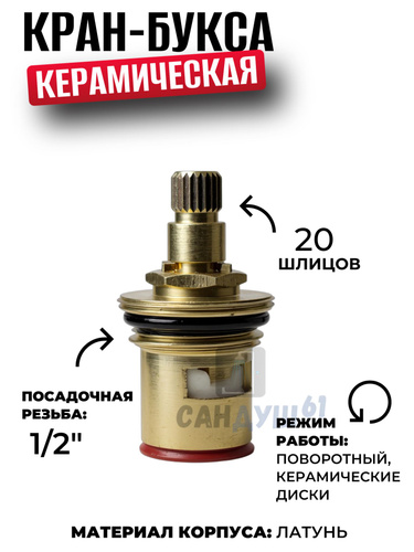 Кран-букса для смесителя 1/2 20 шлицов керамика под маховик