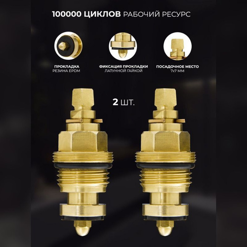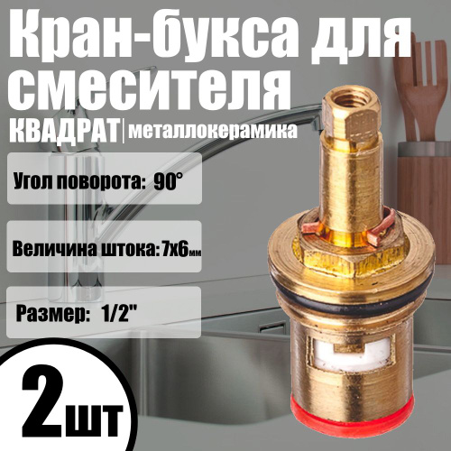 Кран-букса для смесителя 1/2", квадрат, шток 7х6мм, (2шт) 90 гр., металлокерамика