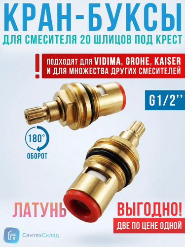 Кран-буксы для смесителя 1/2 20 щлицов керамика под крест