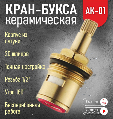 Кран-букса для смесителя АК-01 керамика 1/2" 180гр. 20 шлицов (аналог CH52-4, OC-01)