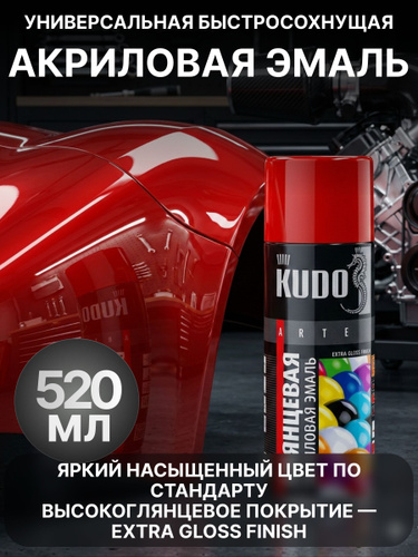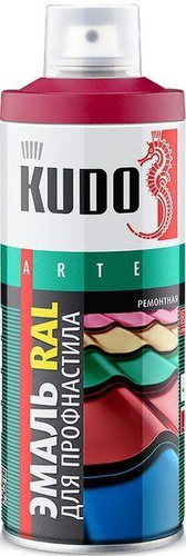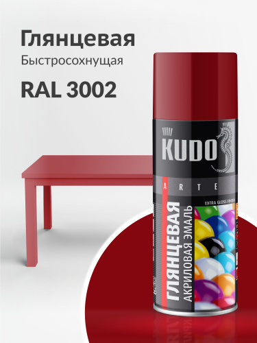 Аэрозольная краска KUDO "Эмаль универсальная быстросохнущая RAL в баллончике" Акриловая, Глянцевая, 0.52 л, Тёмно-красная RAL 3002
