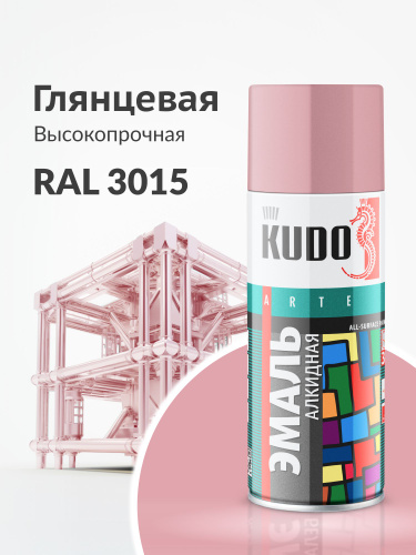 Аэрозольная краска KUDO "Эмаль универсальная высокопрочная RAL в баллончике", Алкидная, Глянцевая, 0.52 л, Розовая RAL 3015, KU-1014