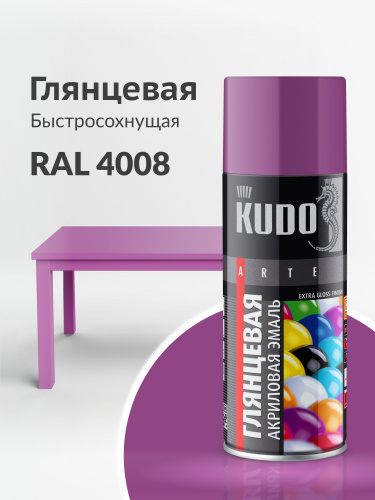 Краска акриловая аэрозольная в баллончике сатин RAL 4010 фуксия KUDO, быстросохнущая, полуматовое покрытие, 520 мл/для металла, дерева, пластика, окрашенных поверхностей