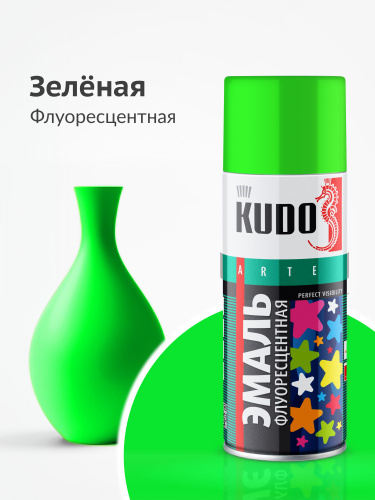 Аэрозольная краска KUDO универсальная, быстросохнущая, акриловая, полуматовая ярко-зеленая SATIN RAL 6018, KU-0A6018, 520мл