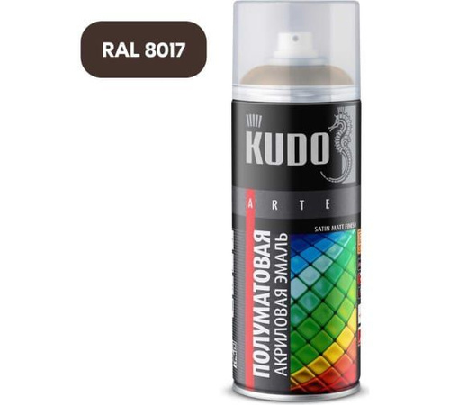 Аэрозольная краска KUDO быстросохнущая акриловая универсальная полуматовая SATIN RAL 8017 коричнево-шоколадная KU-0A8017