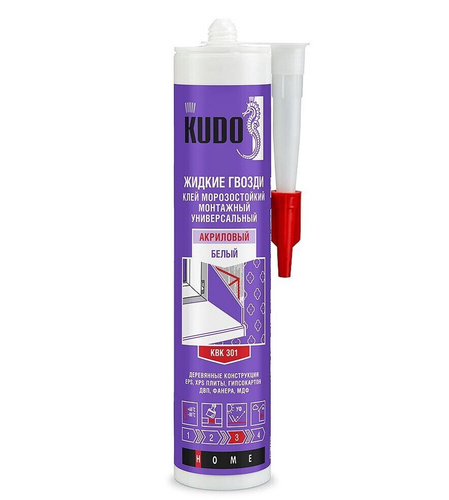 Клей монтажный универсальный акриловый белый KUDO 280 мл / морозостойкий / жидкие гвозди