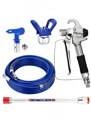 Набор для безвоздушного краскопульта: пистолет, шланг 10м, наконечник 517, удлинитель, держатель сопла