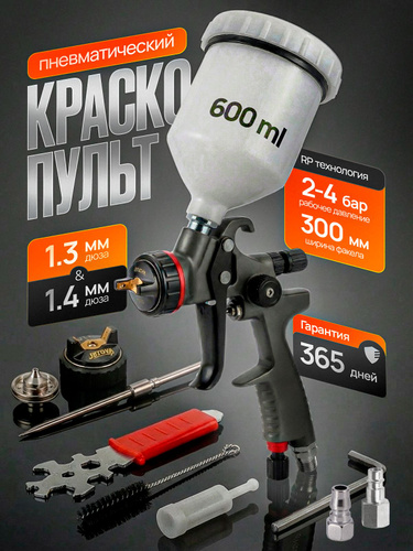 Краскопульт Русский Мастер K-400 (1.4мм) LVLP с верхним бачком 600мл (арт. РМ-383670)