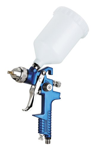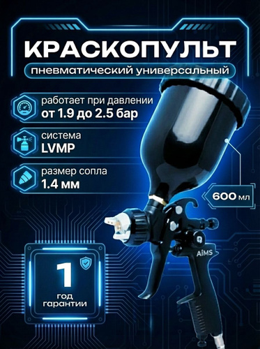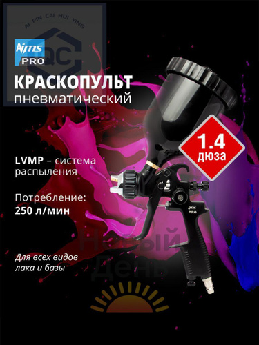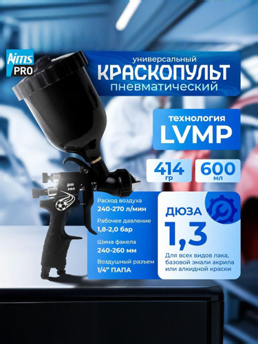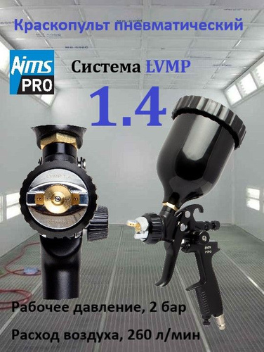 Краскопульт пневматический LVMP Дюза 1.3 (профессиональный краскораспылитель) AIMS PRO с верхним пластиковым бачком и быстросъемом для шланга.