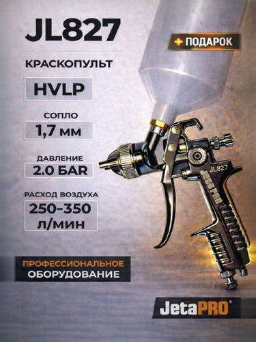 Краскопульт JETA PRO JL827 HVLP дюза 1.7 мм верхний бачок 0.6 л