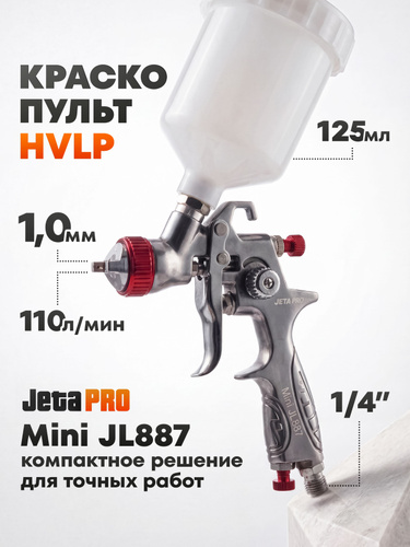 Краскопульт, JETA PRO, Mini JL887 HVLP дюза 1,0 мм, верхний бачок 0,125 л