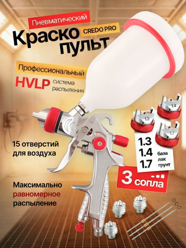 Краскопульт пневматический для компрессора, дюза 1.3 1.4 1.7 мм