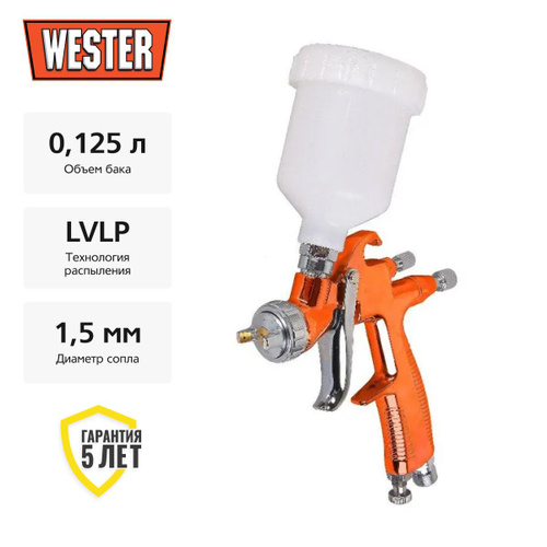Краскопульт пневматический WESTER FPG-40 LVLP, дюза 1 мм, 65-95 л/мин, бачок 0.125 л