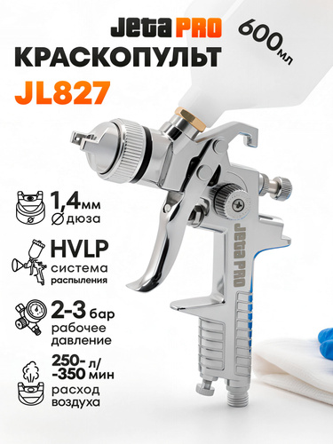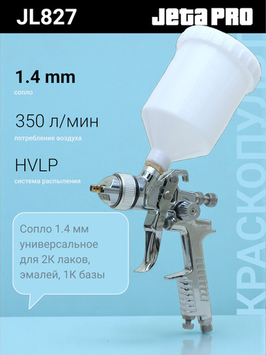 Краскопульт JETA PRO JL827 HVLP дюза 1.4 мм верхний бачок 0.6 л