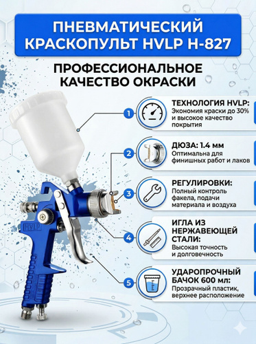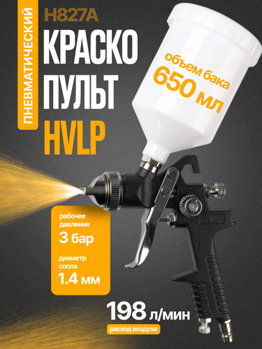 Краскопульт пневматический H-827 HVLP Дюза 1.4, бачок 0.6 мл.