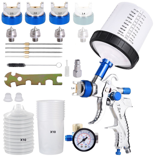 Краскопульт пневматический Дюзы: 1.4/1.7/2.0/2.5 мм(профессиональный краскораспылитель) Spray gun с верхним пластиковым бачком (600мл,С манометром)